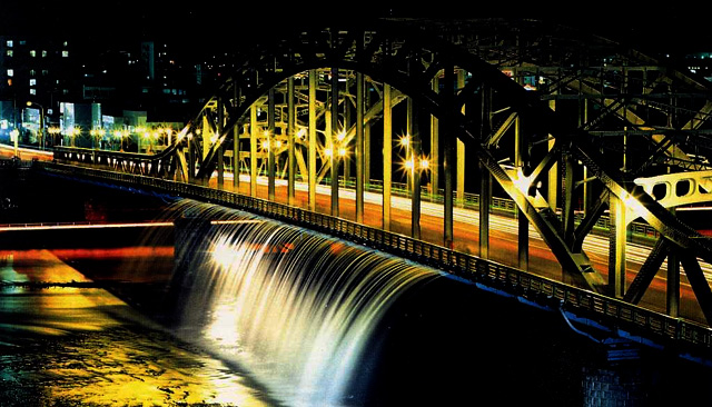 「いくつもの時代と思い出を刻みながら、人々の暮らしをみつめてきた橋があります」-『旭橋』という名の豆本の書き出しである。 旭橋は道北の中心都市旭川を流れる石狩川に架かる橋で、1892(明治25)年、現在の位置に土橋が架けられたのに始まり、1932(昭和7)年、鋼鉄製のアーチ曲線を描く橋が、当時の最新技術をもって竣工した。川のまち・旭川の象徴。