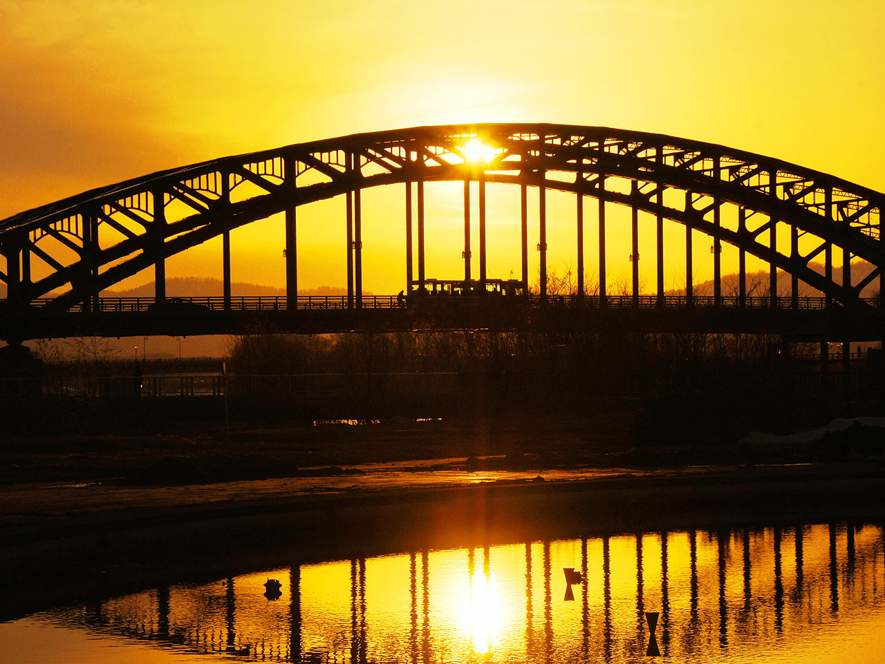 夕陽のシルエットや朝靄、大雪連峰とのコントラスト等、周囲の自然にとけ込んだ景観は幻想的かつ壮大。