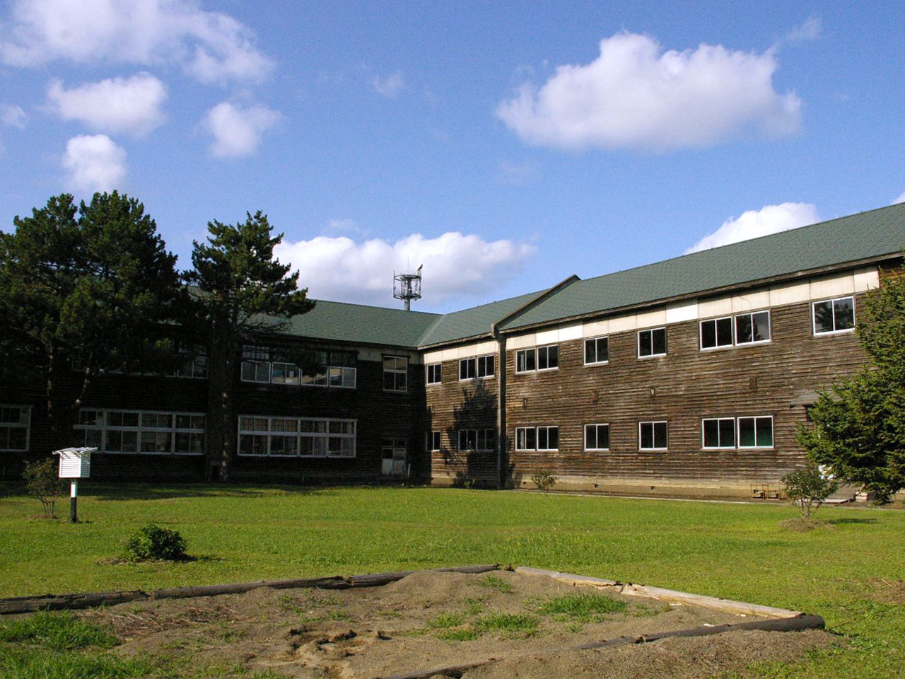 街を一望する小高い丘に建つ1936(昭和11)年建築の木造校舎。道内に残る木造の小・中学校校舎では最も広いもので、平成23年度まで子どもたちが元気に学んでいました。