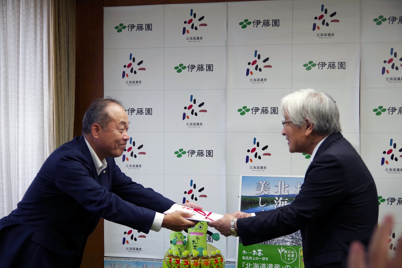 株式会社伊藤園様では、「お~いお茶」の売上の一部を、日本各地の環境保全・整備活動と自然豊かな環境づくりなどに取組む自治体等に寄付する「お茶で日本を美しく」キャンペーンを展開されております。北海道では平成22年度より「お茶で北海道を美しく」キャンペーンとして、北海道遺産に選定されている地域の自然環境保全活動へのご支援をいただいており、2022年11月28日~12月31日までに実施されたキャンペーン期間中の売上の一部から80万円のご寄付をいただきました。