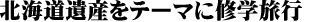北海道ならではの豊かな自然はもちろん、北海道を生きてきた人々の歴史や文化、生活、産業など有形・無形の多様な物が選定されている北海道遺産は、「北海道」を学ぶには最適の素材であり、修学旅行にはぴったりのテーマではないでしょうか。すでに札幌市内の小学校では北海道遺産をテーマにした修学旅行も行なわれています。また、(財)北海道観光連盟作成の『北海道修学旅行ガイド』にも北海道遺産の情報が掲載されています。