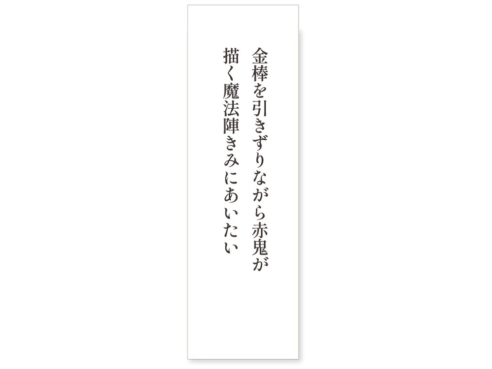「金棒を引きずりながら赤鬼が描く魔法陣 きみにあいたい」