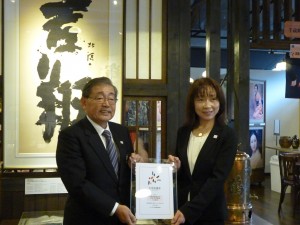10月12日に神副理事とともに選定証を届けにお伺いし、歴史ある工場の見学もさせていただきました。北海道遺産選定証は、札幌の地酒づくりの歴史を伝える「千歳鶴酒ミュージアム」に設置される予定です。