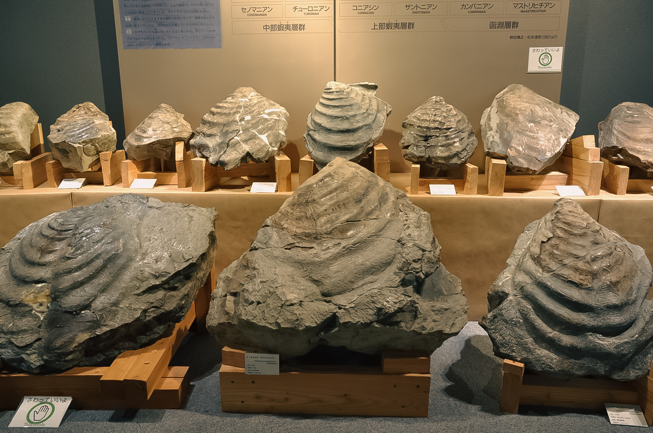 穂別博物館にはいると、まず、クビナガリュウ(エラスモサウルス科)ホベツアラキリュウ(通称ホッピー)が迎えてくれる。約40年前にこの博物館が建設された時、このクビナガリュウを主役に据えた。しかし、博物館を奥へと進めば、ほかの展示品の凄さに驚く。モササウルス・ホベツエンシス(1985年新種として発表)、メソダーモケリス・ウンデュラータス(1996年に新属新種として発表)、フォスフォロサウルス・ポンペテレガンス(2015年に新種として発表)が、展示されている。アンモナイトについても、新種が2013、2014年に相次いで発表されている。さらに二枚貝イノセラムス・ホベツエンシスなどのコレクションは素晴らしく、博物館スタッフによって「いのせらたん」というキャラクターが創り出された。なかなかシュールなキャラクターで私は好きである。