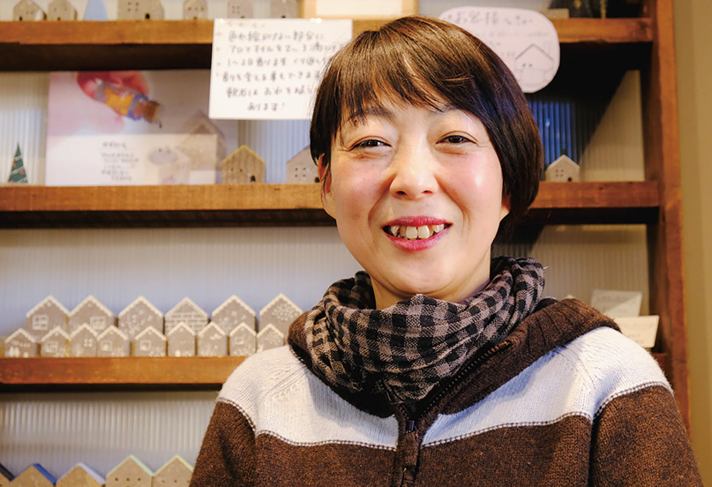 もうひとりの「変態」は、札幌南区石山にある建物「ぽすとかん(旧石山郵便局)」で、「軟石や」を営んでいる小原恵氏である。「軟石や」は、軟石で制作された雑貨を販売している。軟石を探求し続ける小原氏だからこそ作れたのであろう「かおるいえ」シリーズは、札幌軟石の吸水性を活かして、数滴のアロマオイル(精油)を石にしみ込ませるアロマストーンで、机の上に置いたり、小ぶりなものはお土産にも最適である。