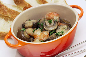 ぐつぐつと沸騰しているオイルの中には、エビやブロッコリーと一緒に存在感のあるマッシュルーム。「とかちマッシュ」です。 パスタやスープなどにも登場するちょっとオシャレなこの食材は、この地ならではの特別な環境が結びついて誕生した十勝のブランドです。