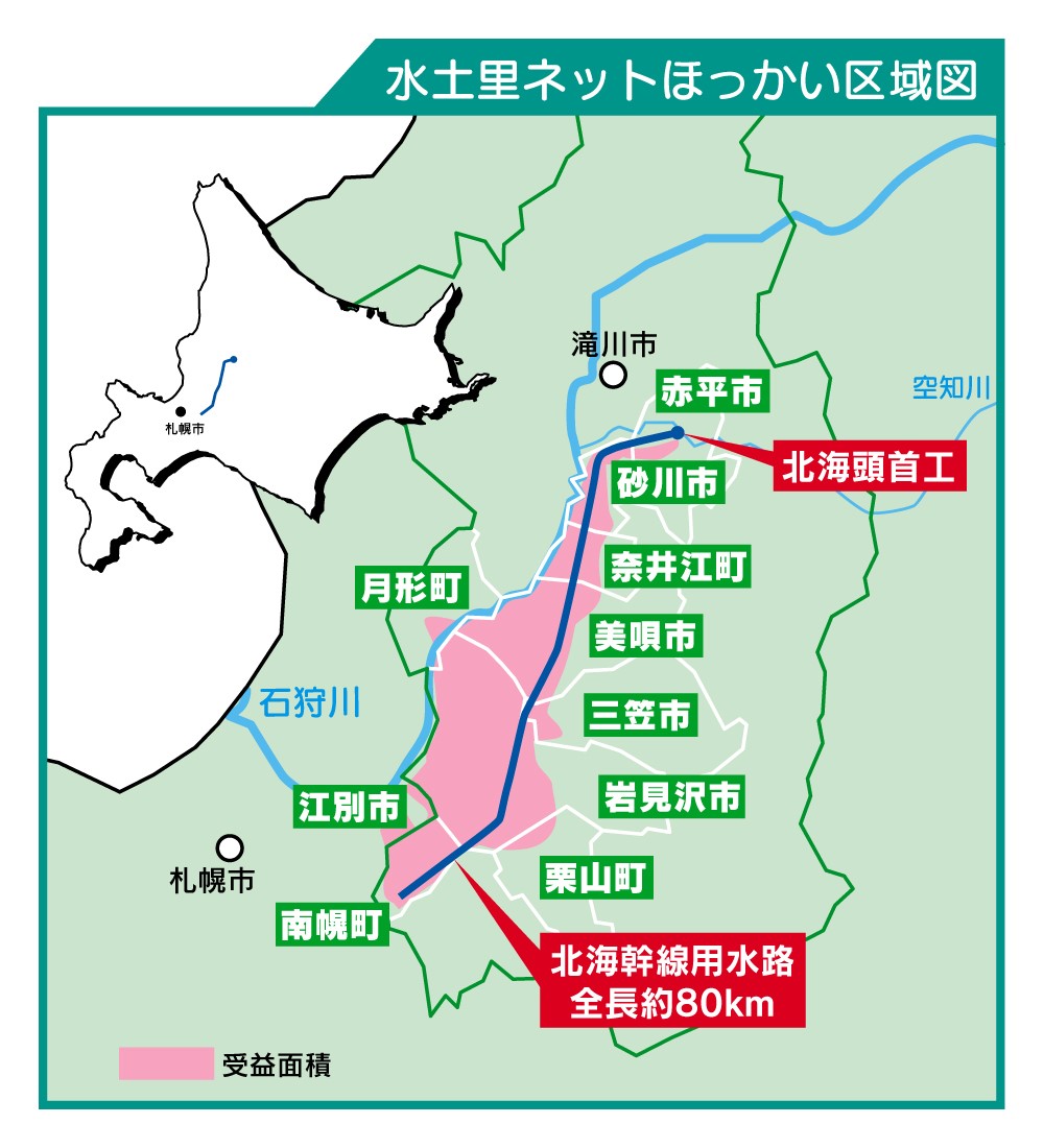 コメどころ空知を支えているもう一つの「絶景」は、赤平市から南幌町までの7市町をまたぐ全長80キロ、農業用では日本一の「北海幹線用水路」。空知川から引き込まれた豊富な水が5月から8月末まで約120日間、各地を巡ります。コメづくりに重要なのは、田植え時期から稲刈りまでの水管理。明治時代から計画され戦争や関東大震災などに阻まれながらも完成したこの大事業のおかげで、空知のコメ農家の皆さんは、安心して美味しいお米づくりに励むことができるのです。