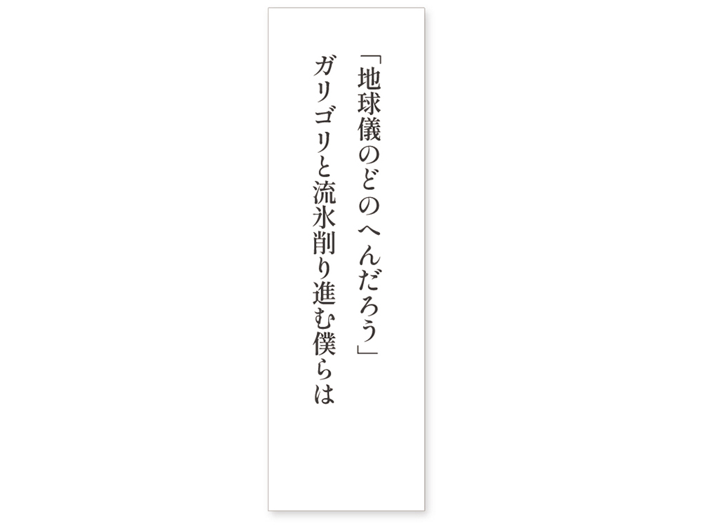 「「地球儀のどのへんだろう」ガリゴリと流氷削り進む僕らは」