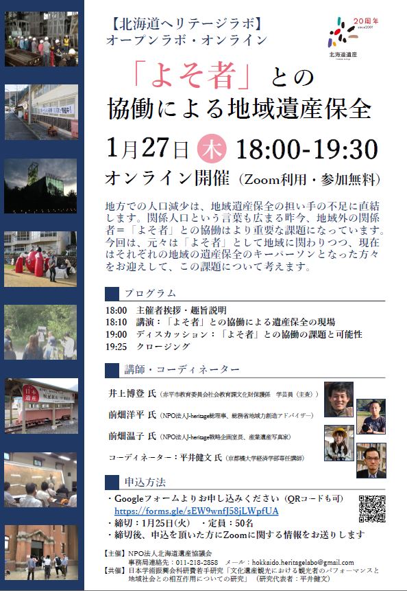 ■【北海道ヘリテージラボ】オープンラボ・オンライン