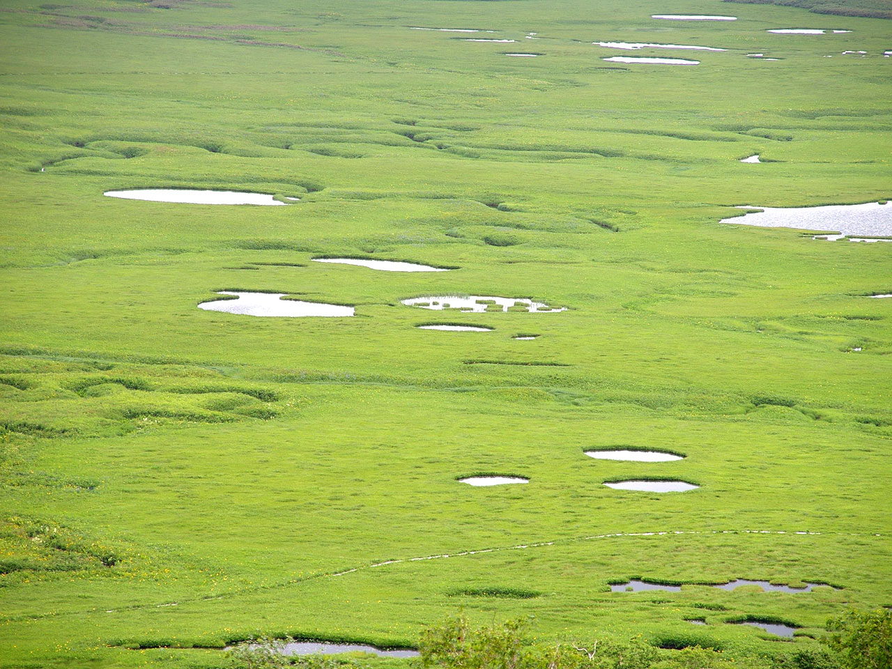 増毛山地の標高850mにあり、北海道の山地湿原の中ではもっとも大きな高層湿原。大小様々な地塘(ちとう)が700以上あり、独特の景観を見せる。湿原植物も豊富で、1964(昭和39)年に道指定天然記念物、1990(平成2)年に暑寒別・天売・焼尻国定公園特別保護地区に指定された。「雨竜沼湿原を愛する会」による活動は、湿原を未来に伝える大切さと難しさを教えてくれる。