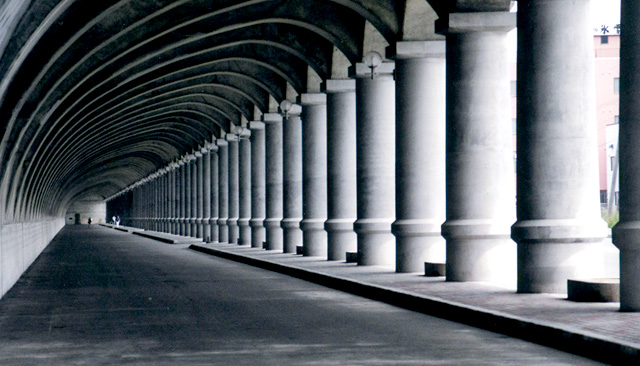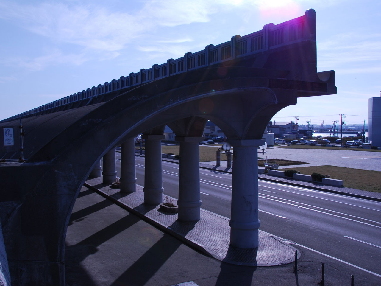 稚内-樺太大泊間の旧稚泊航路整備の一環として、冬季の北西越波防止のために建設された半アーチ式ドーム。海上からの高さ14m、柱間6mの円柱70本を並べた長さ427mの世界でも類を見ない独特の景観と構造を持ち、港湾土木史に残る傑作であるとともに、旧樺太航路時代の記憶を残す歴史的遺産。設計者は、当時26歳の土木技師・土谷実。